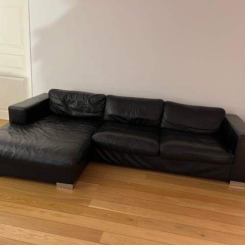 Flot sofa i sort kernelæder. Til hurtig afhentning !