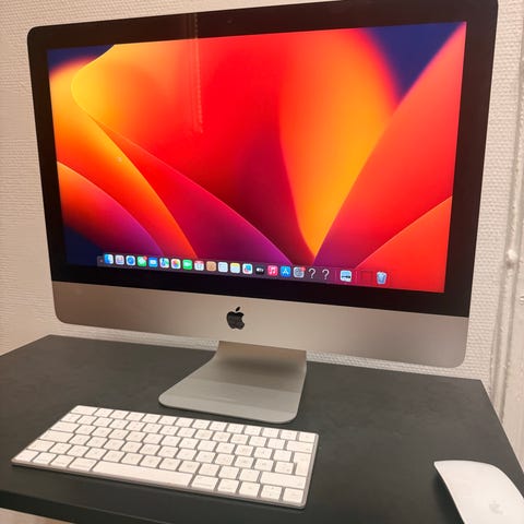 Apple iMac stationær computer med integreret skærm og tilhørende Apple tastatur, men uden mus.