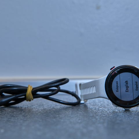 Garmin Forerunner GPS smartwatch med sort rem. Uret har en rund urskive og er designet til at blive båret på håndleddet. Velegnet til træning og daglig brug. Rigtig fint ur - meget velholdt. Passer til mindre håndled.