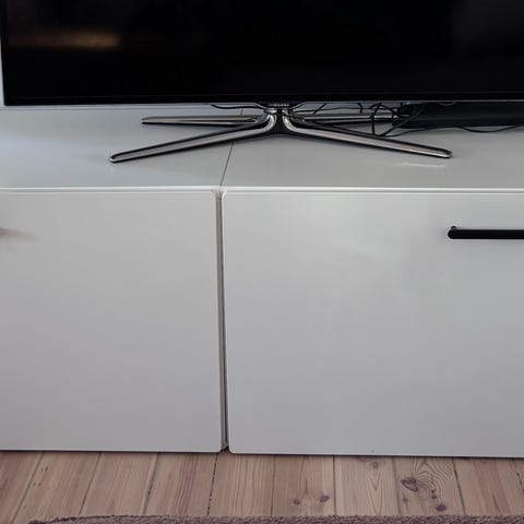 SMÅSTAD BÆNK MED LEGETØJSOPBEVARING I HVID OG GOD STAND TIIL SALG, 90x52x48 cm