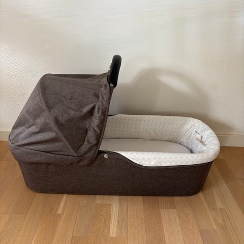 Odder Lift til barnevogn - grå. Fast rem for nem transport, og aftageligt top/dækken. Passer til Odder barnevogn med stort liggemål - brugt, men i stand stort set som ny.