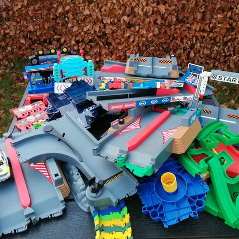 3 store kasser med Flexi-track. Har været leget flittigt med men er nu klar til at komme videre til et andet barn.