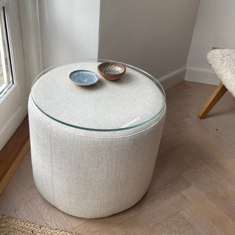 Vi har flyttet rundt på sofaerne, og har ikke længere plads til denne lækre puff.