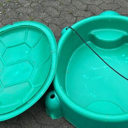 Sandkasse fra Paradiso Toys fremstillet i plastik i en muslingeskal. Kan anvendes som sandkasse eller badevassin