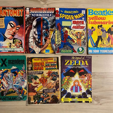 Kong kylie alle med Tintin I, 3 af dem er der superman i,gyldenspjæt, tidligt fantom hefte ,+andre sjove ting!!