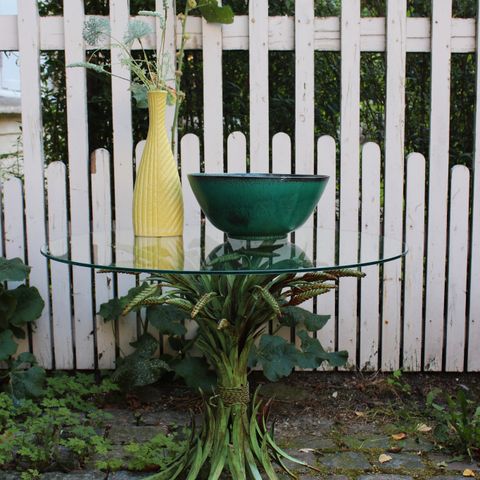 Elegant glasbord med glasplade og kromfod i Chanel-inspireret CC-design. Bordet er i meget flot stand, og beskyttelsesplastikken sidder stadig på glasset, da det stort set ikke har været brugt.