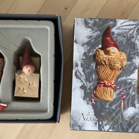 Nicoline og Nicklas Juledekorationer med nissefigurer og potter