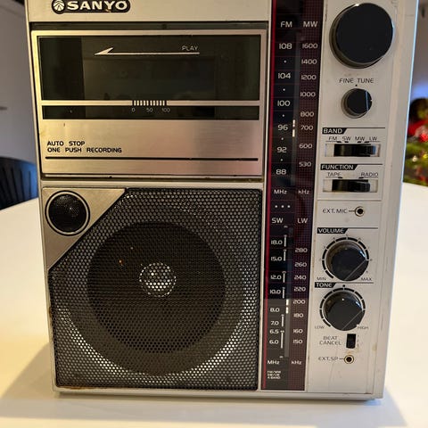 Grundig RTV 303 radio og kassettebåndoptager med træfinish og metalfront. Vides ikke om den virker, deraf prisen.