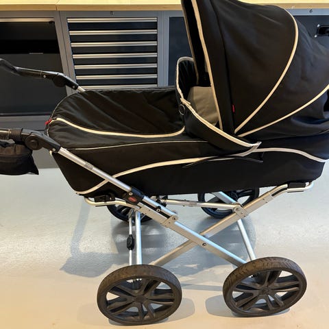 Fuld funktionsdygtig barnevogn til dig, hvor brugsspor er af mindre betydning og behovet er en solid vogn med stort liggemål, der er god i terræn pga. de store luftdæk og god affjedring.