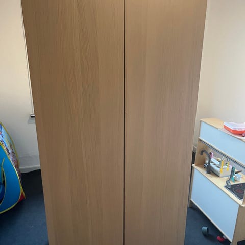 Klædeskab fra Ikea PAX med 6 skuffer og 5 hylder. Har nogle brugsspor. Korpus og indmad adskilles inden afhentning.