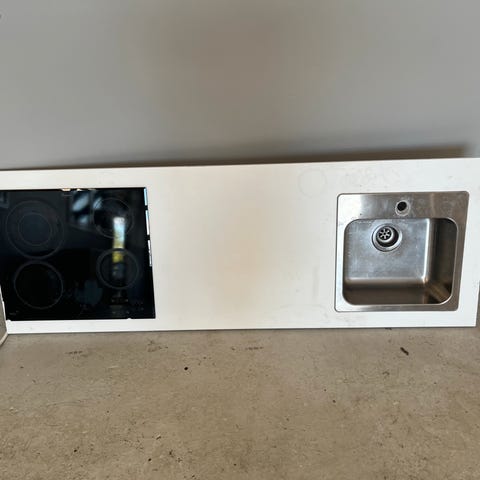 Brugt laminat bordplade med planlimet Lavabo stålvask sælges renovering af køkken.