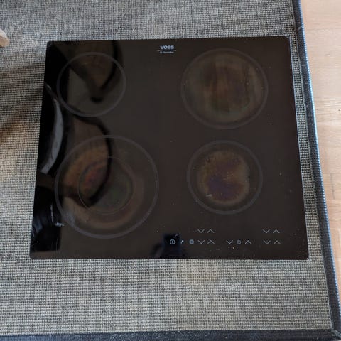 Keramisk kogeplade med fire kogezoner. Overfladen er glat og let at rengøre.