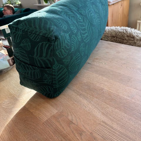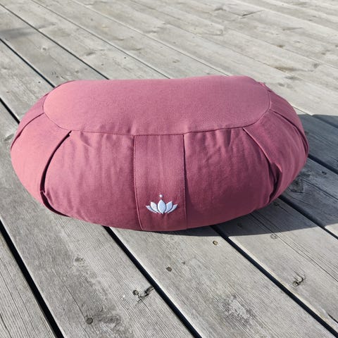 Blå meditationspude 1/2 måne med lynlås og bæregreb. Str. 45 x 25 x 20. Har aldrig været brugt.