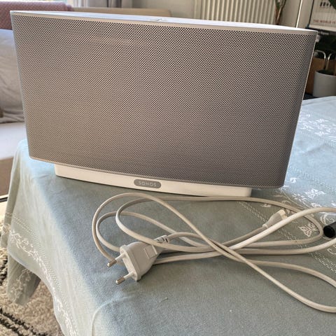 Sonos Play:5 trådløs højttaler i hvid farve. Udstyret med flere tilslutningsmuligheder, herunder netværksporte og lydindgange. Designet til at levere lyd til forskellige rum og kan tilsluttes trådløst til andre Sonos-enheder. Kommer med strømkabel og har en robust opbygning.kan bruges med Sonos 1 appen god lyd sælges grundet opdateret Sonos anlæg derfor bruges den ikke pris 750kr