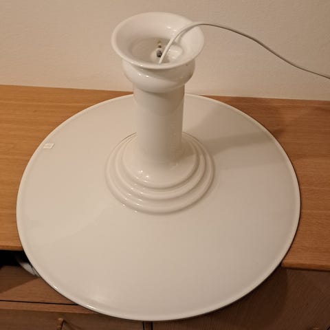 Fin loftlampe fra Holmegaard, flot tidsløs design i det hvide glaslook.