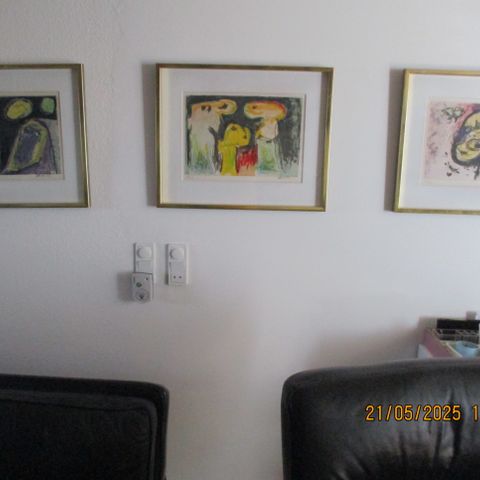 Cleerte 90 litografi i begrænset oplag nummer 47 ud af 200. Værket har en ramme i guldfarve og viser et abstrakt motiv med forskellige farver og former.