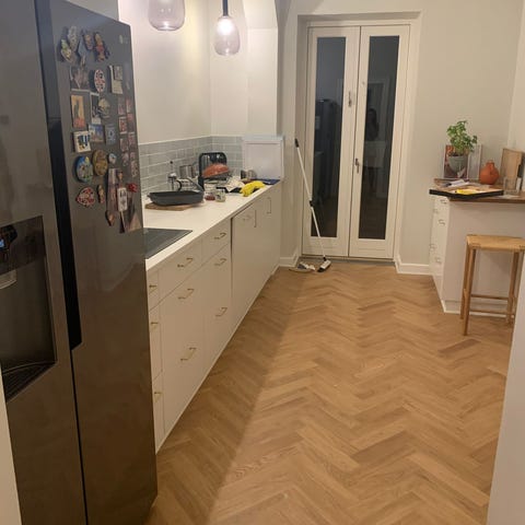 Gives væk som samlet enhed. 4 stk 40x20 skuffefront. 2 stk 80x20 skuffefront. 2 stk 80x25 hjørneskab, 5 stk 40x89 låger, 1 stk 60x80 låge. Beslagene har jeg beholdt til mine nye fronter. Afhentning i Glostrup