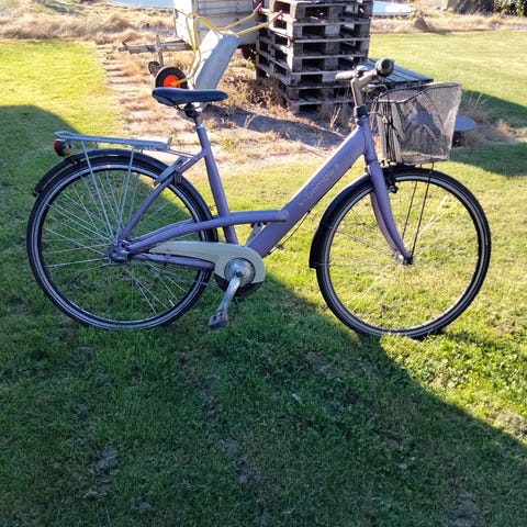 Sølvgrå 28" damecykel, Kildemoes citybike street, med 7 indvendige gear. Nye lygter, lås, cykelkurv, og reflekser. Fine dæk og kører rigtig godt.