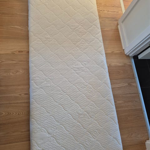 Junior madras 111 L x 54 B , meget lidt brugt, skum madras med zoner toppe