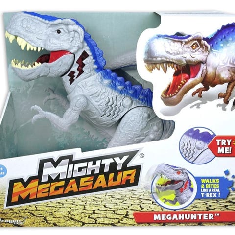 Legetøjet består af en blå Triceratops og en rød T-Rex, begge med mekaniske detaljer og bevægelige dele. Designet til børn og fremstillet i plastikmateriale. Begge dinoer kan skyde, når man trykker på den viste knap. Kamp udstyr kan tages af. Ligesom hoved og hale på den blå. Brugt 2 gange