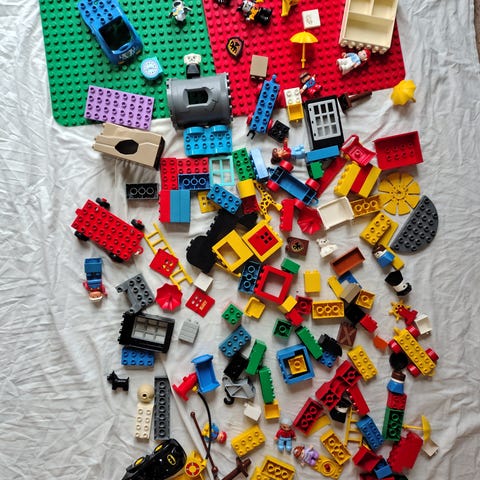 En hel kasse med blandet duplo fra 1980/90 erne, se billeder, alt er som nyt