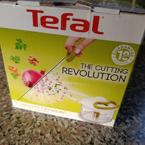 Tefal hakker til madlavning med sort låg og gennemsigtig beholder. Indeholder knivblad og låg med håndtag til nem brug.