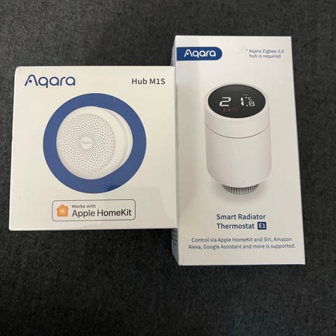Aqara Radiatortermostat i hvid farve. Designet til at regulere temperaturen på radiatorer. Passer til standard radiatorventiler og kan anvendes i hjemmets varmesystem.