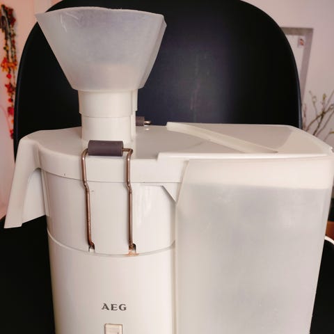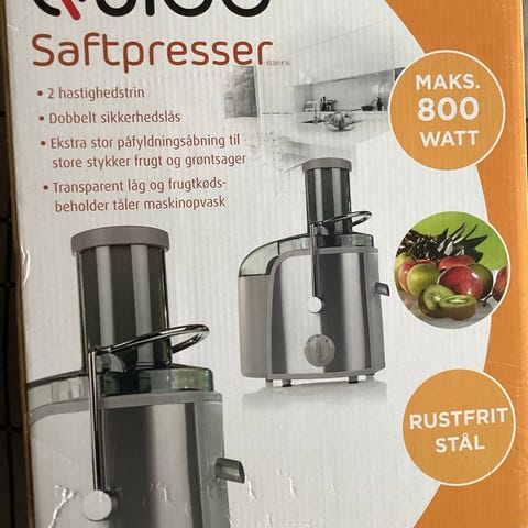 Fejlkøb; Helt ny Cook & Baker saftcentrifuge i rustfrit stål med sort plastdele. Designet til effektiv presning af frugt og grøntsager til saftproduktion. Indeholder en beholder til opsamling af saft og en beholder til frugtkød. Passende til brug i private køkkener. Købt i eftersommeren 2025 i Imerco som fejlkøb.