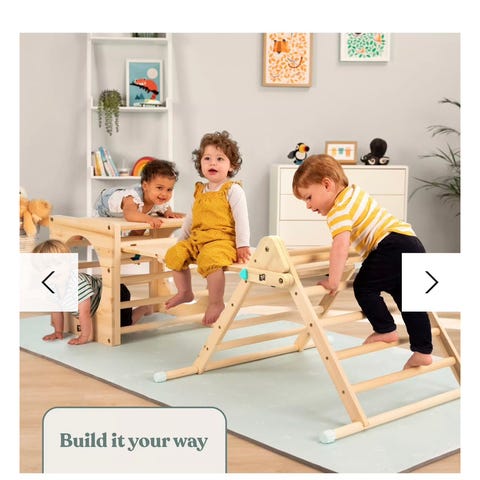 Når dit barn er stærkt og modigt nok til at kravle op ad siderne, er toppen så smart indrettet, at der er to ribber øverst. Det giver en rolig base på toppen, så dit barn roligt kan kommer over på den anden side og kravle ned igen eller vende om og kravle ned ad samme side. Dit barn kan også lige sidde lidt på toppen og nyde udsigten og lege bjergbestiger - måske der vanker en clementin og en lille kop te på bjergets tinde?