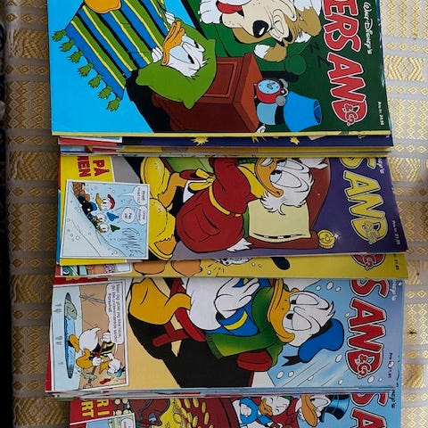 Walt Disney Anders And tegneserie samling med flere bind i forskellige udgaver og farver. Serien indeholder klassiske tegneserier med Anders And og andre figurer fra Disney-universet. Omkring 50 stk. skriv for mere info. S