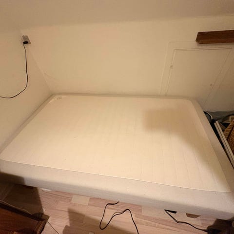Seng med futonmadras. Sengen har 4 skuffer til opbevaring. Med madras har sengen en højde på 37 cm.