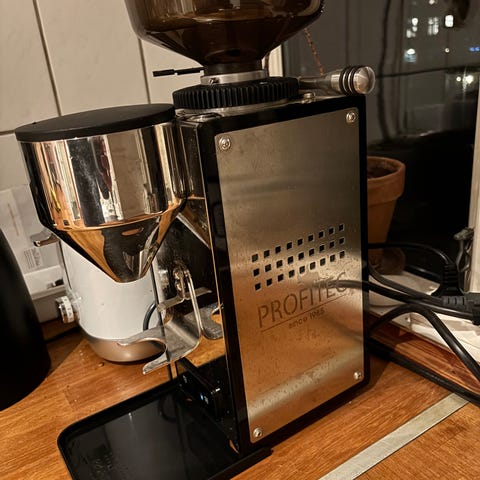 Restaureret Santos Type 6 kaffekværn. Model fra 1987, som kværner fint men kan bruge en kærlig hånd til dosermekanismen som pt. er adskilt. Modellen fik nye 63mm skiver for 10 år siden, blev testet og har ellers stået ubrugt siden (dog testet for nylig igen). Modificeret Mazzer hopper følger med. Giv et bud.