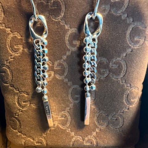 Louis Vuitton hoops sølvbelagte, som nye, aldrig brugt, ca 20 år gamle. Let lyseblåt element med LV logo inkorporeret. Super cool og smukke! Perfekt julegave.
