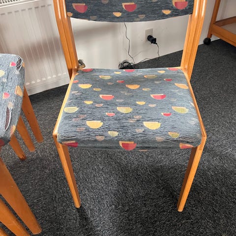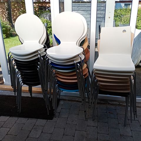 4 spisebord/stabelstole i fin stand. Prisen er pr stol.