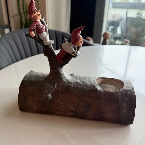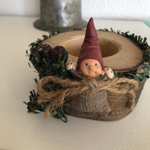 En fin lille kalenderlys holder fra Klarborg med nisse og flagranke. Næsten som ny