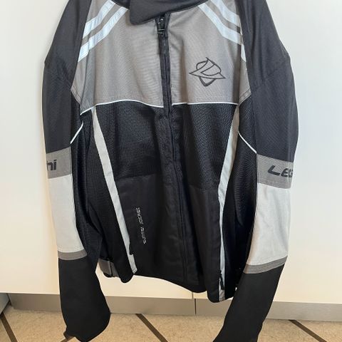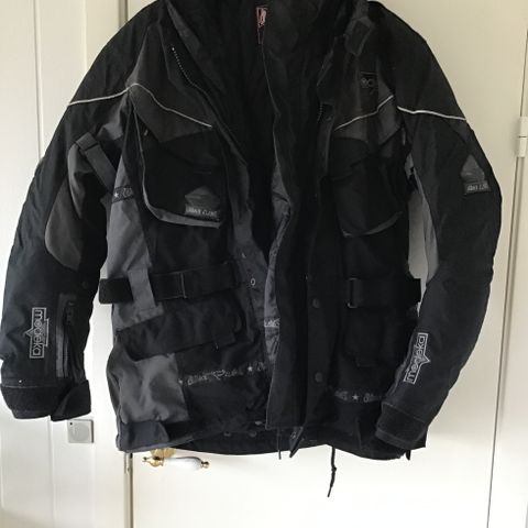 Fin jakke i str 152. Mærke Modeca. Beskyttelse i skuldre og albuer. Med for som kan lynes ud. Kan lynes sammen med bukser (se anden annonce). Min datter er vokset fra den så den skal videre. Hun er slank og ca 172 cm så længde på ærmer er lidt for kort.