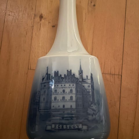 Porcelæn, Dramflaske Med Egeskov, Royal Copenhagen, Fin ældre dramflaske i porcelæn med motiv fra Egeskov Slot.