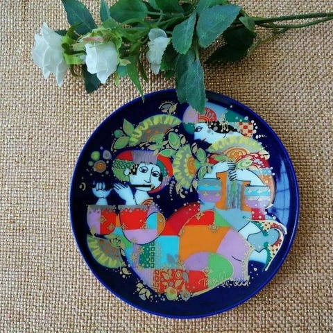 Bjørn Wiinblad hånddekoreret Juleplatte " Flugten til Ægypten" 28,5cm i diameter