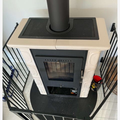 Borgholm kombinerer et traditionelt look med moderne konvektion. Den firkantede brændeovn er udført i sort stål med brændemagasin og en dekorativ cremehvid keramikbelægning, der hjælper med at holde på varmen.