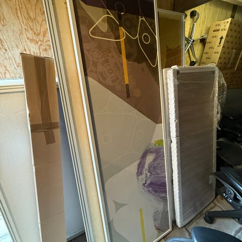 Materiale: Lydabsorberende kerne (klasse A), trykt tekstil og alu-ramme.
