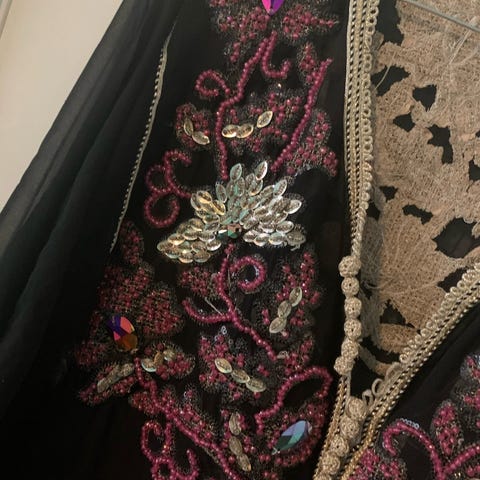 Marokkansk lang kjole i 2 lag. Nougat farve. Brugt men i god stand. Str S/M