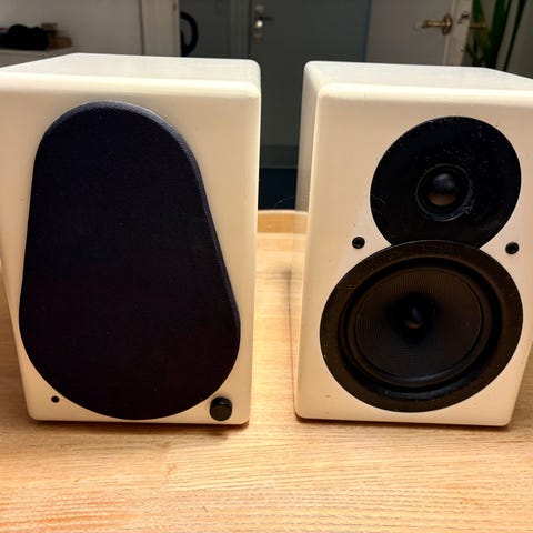 Argon 6140 højttalere med hvidt kabinet og sort frontstof. Passer til brug i stereoanlæg eller hjemmebiografsystemer. Tilslutning via standard højttalerterminaler på bagsiden.