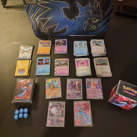 Boksen indeholder op til 60 almindelige Pokemon Deck kort med kortlommer.