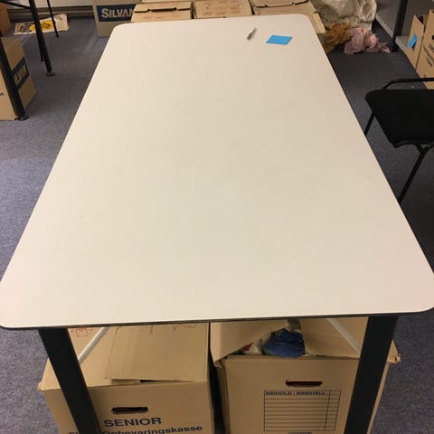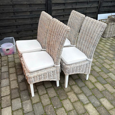 4 sorte stole og 1 kantinebord (målene er for bordet).