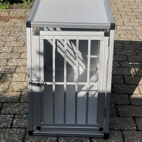 Transportbur i metal med aftagelig bakke. Burens materiale sikrer nem rengøring og holdbarhed. Velegnet til transport og midlertidig indkvartering af kæledyr.