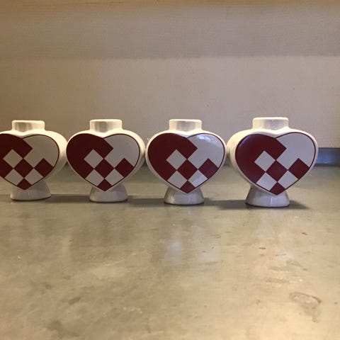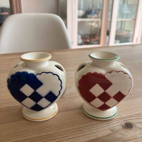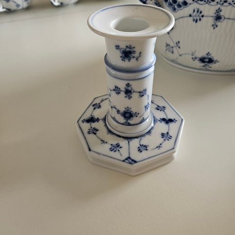 2 blå nuancer i hjertestager fra Aluminia. Ingen skår eller skader. Prisen er for begge stager