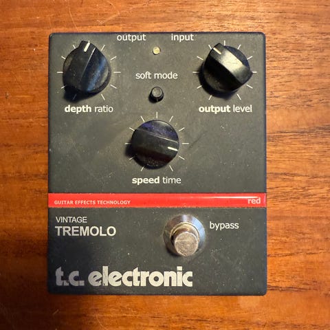 Joyo Vintage Overdrive guitar pedal med kontrolknapper for Drive, Volume og Tone. Enhedens kabinet er grøn med gule knapper, designet til at give overdrive-effekt til elektrisk guitar. Strømforsyning via AC adapter, kompatibel med 9V DC. Kompakt størrelse og robust konstruktion.