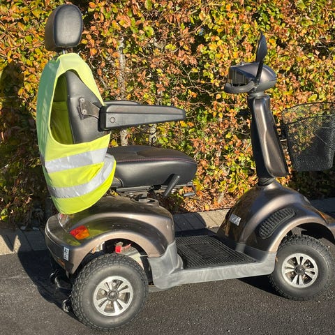 Thansen El-scooter 3-hjulet i sort farve. Scooterens design inkluderer tre hjul for stabilitet og komfort. Egnet til personer, der har brug for et elektrisk køretøj med ekstra balance.