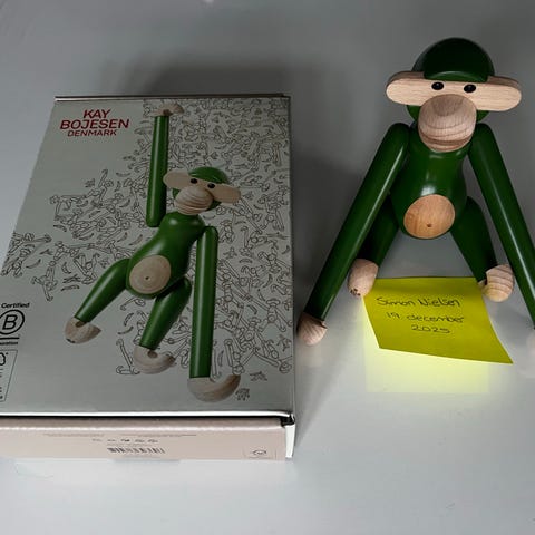 Kay Bojesen mini aber sælges. Mangler du en julegave eller en mandelgave? 3 mini aber sælges. 1 i flot blå, 1 i flot karry gul og 1 sort. Aldrig stået fremme, helt nye i kasse. Alle 3 for 600 kr. eller 1 for 220 kr. Afhentes i Solrød Strand.