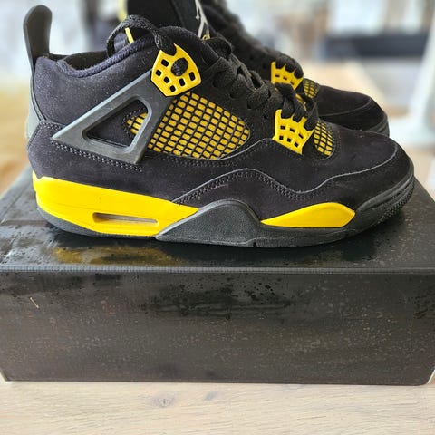 Flotte Air Jordan 4 retro, White Thunder sko, str. 39. Er kun anvendt i en kort periode pga hurtig vækst. Kan sendes på købers regning.
